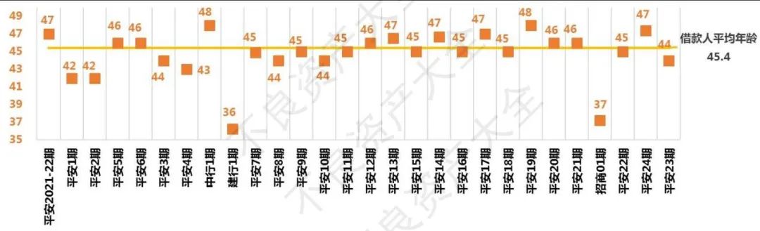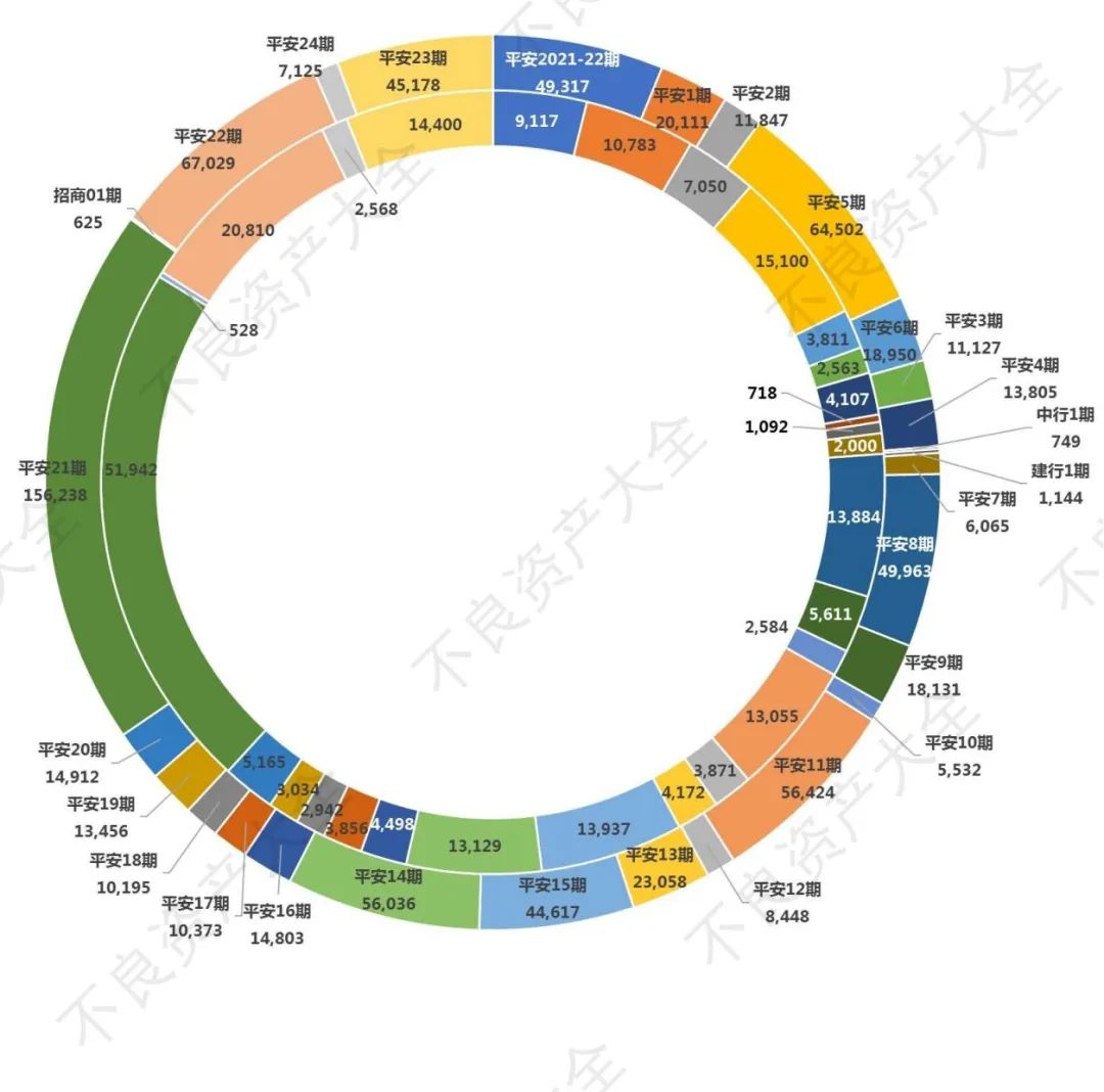 特別地,賬齡最短的三期為:建設銀行2022年第1期賬齡為5個月多,招商銀行2022年第1期賬齡為不到7個月,中國銀行2022年第1期賬齡為7個月多。有意思的是,這3期為1-4月28期中唯三不是平安銀行的不良資產,且賬齡都在半年左右。可見單從賬齡角度看的話,這三家銀行誠意十足。