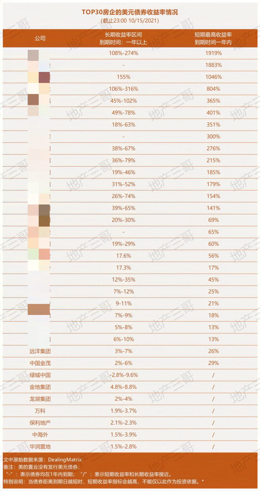 隨著花樣年官宣美元債違約,中資地產美元債券收益率飆升。