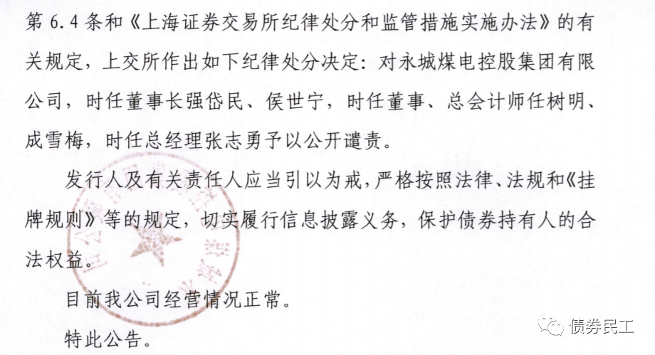 永煤集團收到上交所紀律處分決定書!