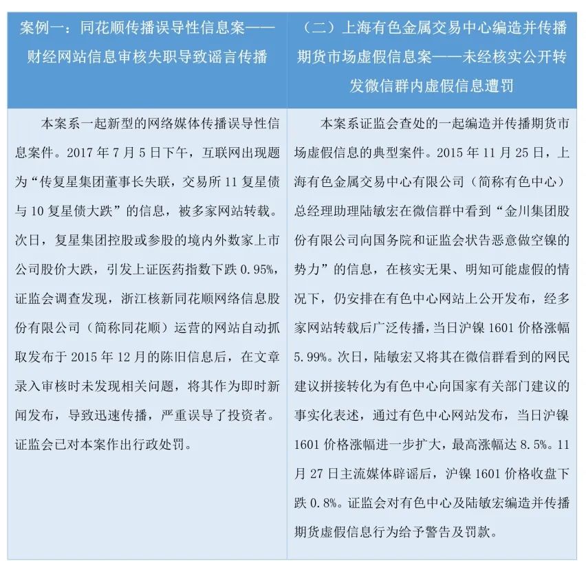 編造傳播虛假信息是證券期貨法律法規嚴格禁止的行為,歷來是證監會稽查執法打擊重點。近年來,證監會依法履行監管職責,堅決查處編造傳播虛假信息行為。2016年至2019年2月1日期間,證監會共辦理相關案件17起,依法做出行政處罰13起,對同花順網絡、曾改雄、曹磊等人進行了嚴肅查處;2起案件移送公安機關采取治安處罰措施。
