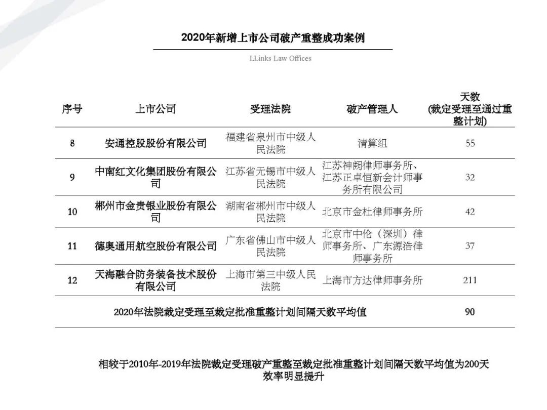 通過比較該等案例與此前的69個重整案例, 我們發(fā)現(xiàn), 與目前破產(chǎn)領域“ 能破則破, 應破盡破 ”的指導原則相對應的是, 破產(chǎn)受理法院與破產(chǎn)管理人的專業(yè)水平與案件處理效率與此前相比都有了巨大飛躍, 不少上市公司通過執(zhí)行重整計劃獲得了真正的新生, 《企業(yè)破產(chǎn)法》不再是被“束之高閣”的“國企改革法”, 而是真正成為了企業(yè)重獲新生的捷徑。今天我們特與大家分享該81個破產(chǎn)重整案例, 希望大家可以有所收獲。