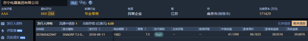 與此同時,蘇寧電器還有一筆余額6億美元的美元債將于今年到期。