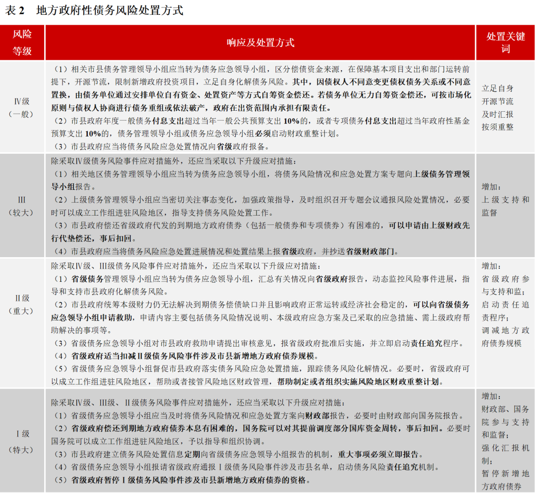 1、短期,政府隱債將顯性化或提前償還,債務風險應急處置制度或完善,加強日常流動性管理