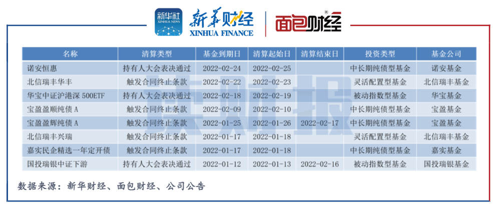 從單家機構來看,北信瑞豐、寶盈基金清算產品最多,各為2只;國投瑞銀、嘉實基金、華寶基金、諾安基金各清算1只產品。
