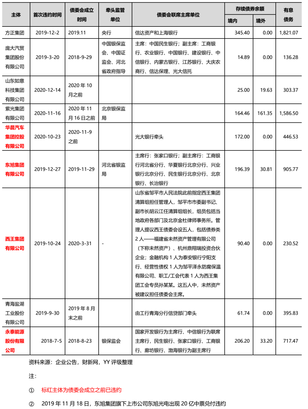 回到現(xiàn)實(shí)和歷史,我們統(tǒng)計(jì)了債委會(huì)運(yùn)作的情況以及此前的一些已經(jīng)違約的主體,債委會(huì)至少?zèng)]有讓事情變得更壞,是起到了相當(dāng)正面的作用的,細(xì)節(jié)如下:
