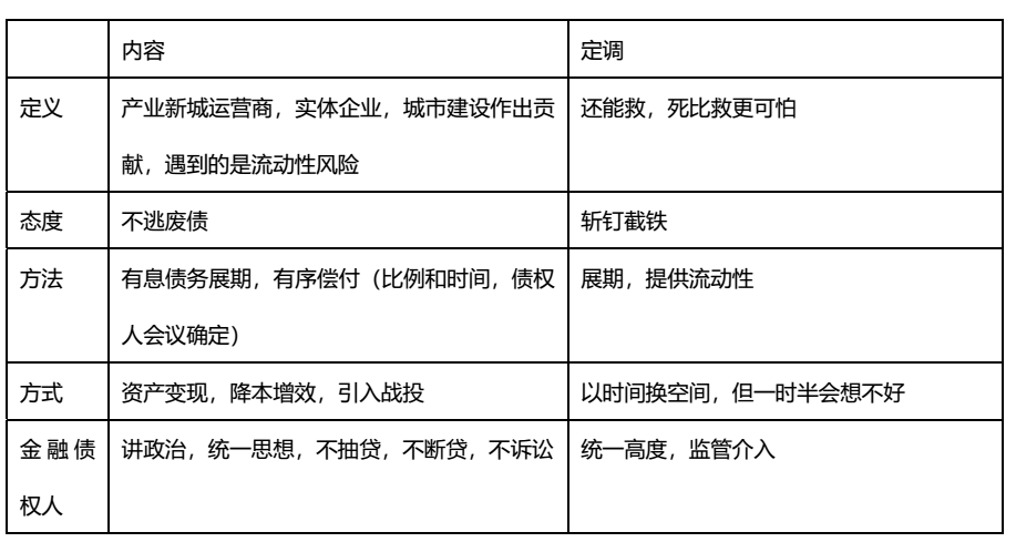 債委會(huì),本意是想提供這樣的一個(gè)臺(tái)階,在債務(wù)幻滅或行將幻滅的時(shí)候,將損失最小化,社會(huì)影響最小化,保障一定程度的秩序,堅(jiān)持按照市場化、法治化、公平公正、分類施策的原則進(jìn)行的一種存在。