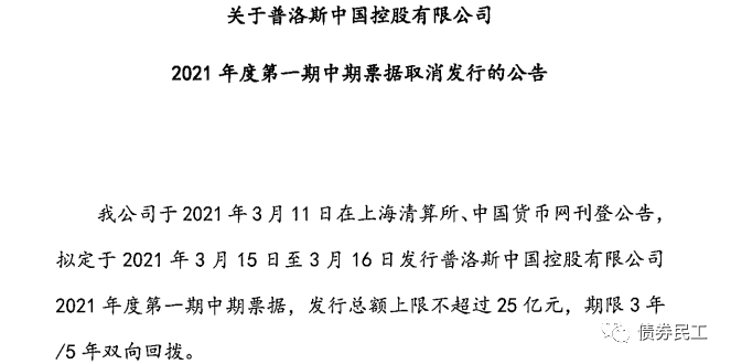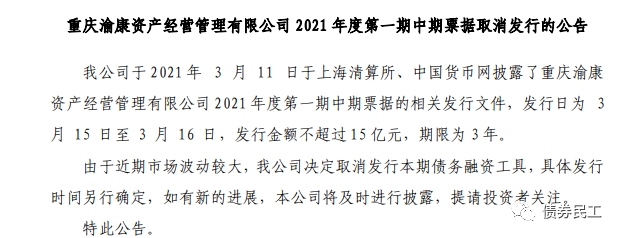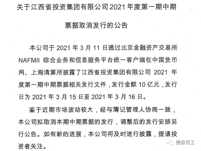 根據wind資訊3月17日的公告信息,多家AAA發行人公布了債券取消發行公告:重慶渝康資產經營管理有限公司 “21渝康資產MTN001”取消發行、普洛斯中國控股有限公司“21普洛斯MTN001A”和“21普洛斯MTN001B”取消發行、取消發行、江西省投資集團有限公司“”取消發行,累計取消金額60億元。