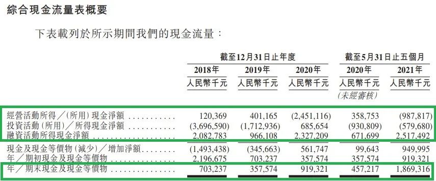 比如,招股書就說,2020年以及2021年前5個(gè)月,錄得負(fù)經(jīng)營(yíng)現(xiàn)金流量。