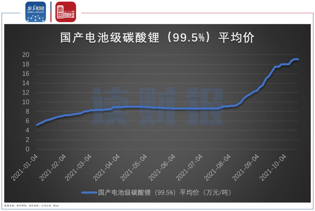 安泰科數(shù)據(jù)顯示,國產電池級碳酸鋰的平均價由年初的5.15萬元/噸增長至9月末的18萬元/噸,增幅接近2.5倍。2021前三季度藏格控股生產碳酸鋰5571.85噸,銷售則達到8390.21噸。