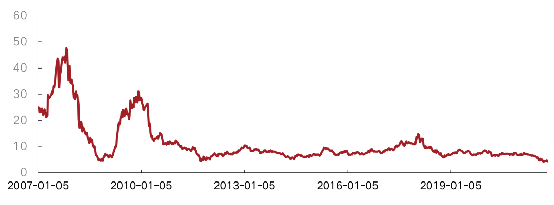 注:恒生中國內地地產指數的推出主要是為了反映前10只市值最大、流通性最高,在香港上市但主要營業收入來自中國內地的房地產股票表現。當前成分股共10只,分別為:中國金茂、中國海外發展、世茂集團、龍湖集團、華潤置地、龍光集團、碧桂園、中國恒大、碧桂園服務、融創中國