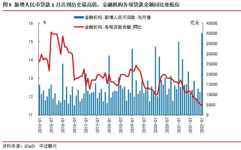 重在寬信用,特別提出擴大信貸規模。2021 年全年金融機構新增人民幣貸款 19.95 萬億元。2022年1月社融增速為10.5%,前值為10.3%;M2同比增速為9.8%,前值為9.0%。2021年1月,央行貨幣政策司司長孫國峰發表《健全現代貨幣政策框架》一文指出:“ 基本匹配不意味著完全相等,M2和社會融資規模增速可以根據經濟形勢和宏觀經濟治理需要略高或略低于名義經濟增速,體現逆周期調節”。央行四季度貨幣政策執行報告指出“2021 年末,M2 和社會融資規模同比增速分別為 9%和 10.3%,同名義經濟增速基本匹配。從兩年平均看,2020 年、2021 年 M2 和社會融資規模增速分別為 9.5%和 11.8%,同兩年平均名義經濟增速基本匹配并略高”。今年社融增速預計在11.0%左右,比較符合預期,可能略高于名義經濟增速。
