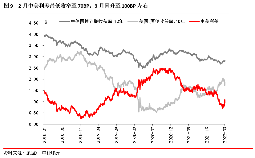 國外因素,關注中美利差收窄,美聯儲3月加息,俄烏局勢的影響,但我國仍 “以我為主”,兼顧內外平衡。