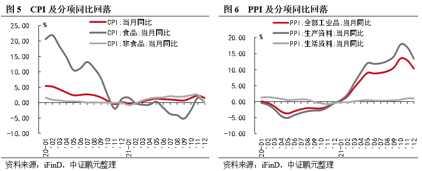 從PPI環(huán)比看,保供穩(wěn)價(jià)政策落實(shí)力度不斷加大,煤炭價(jià)格繼續(xù)回落,煤炭開采和洗選業(yè)價(jià)格下降8.3%,降幅擴(kuò)大3.4個(gè)百分點(diǎn);煤炭加工價(jià)格下降15.4%,降幅擴(kuò)大7.0個(gè)百分點(diǎn)。冬季鋼材、水泥等建筑材料需求偏弱,價(jià)格有所下降,黑色金屬冶煉和壓延加工業(yè)價(jià)格下降4.4%,非金屬礦物制品業(yè)價(jià)格下降1.4%。國際原油、有色金屬價(jià)格走低,帶動(dòng)國內(nèi)相關(guān)行業(yè)價(jià)格下降。石油開采價(jià)格下降8.3%,精煉石油產(chǎn)品制造價(jià)格下降4.0%,有色金屬冶煉和壓延加工業(yè)價(jià)格下降1.4%。