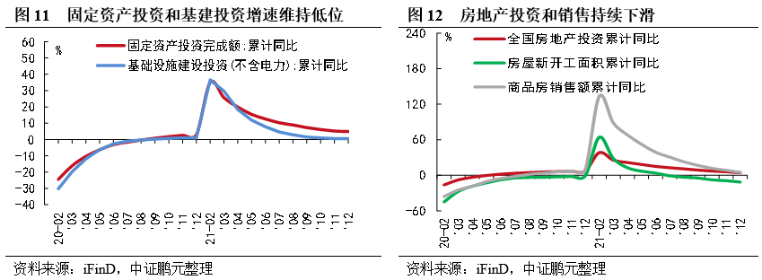 基礎(chǔ)設(shè)施投資比上年增長0.4%;兩年平均增長0.3%,增速與1-11月份持平。從二季度以來,基建投資維持低位,持續(xù)下滑。中央經(jīng)濟(jì)工作會(huì)議提出“適度超前開展基礎(chǔ)設(shè)施投資”,在2022年穩(wěn)增長的前提下,基建投資將發(fā)揮重要作用,去年12月財(cái)政部已向各地提前下達(dá)了2022年新增專項(xiàng)債務(wù)限額1.46萬億元,要求節(jié)奏上把握“早、準(zhǔn)、快”,預(yù)計(jì)基建投資增速將會(huì)迎來上行。