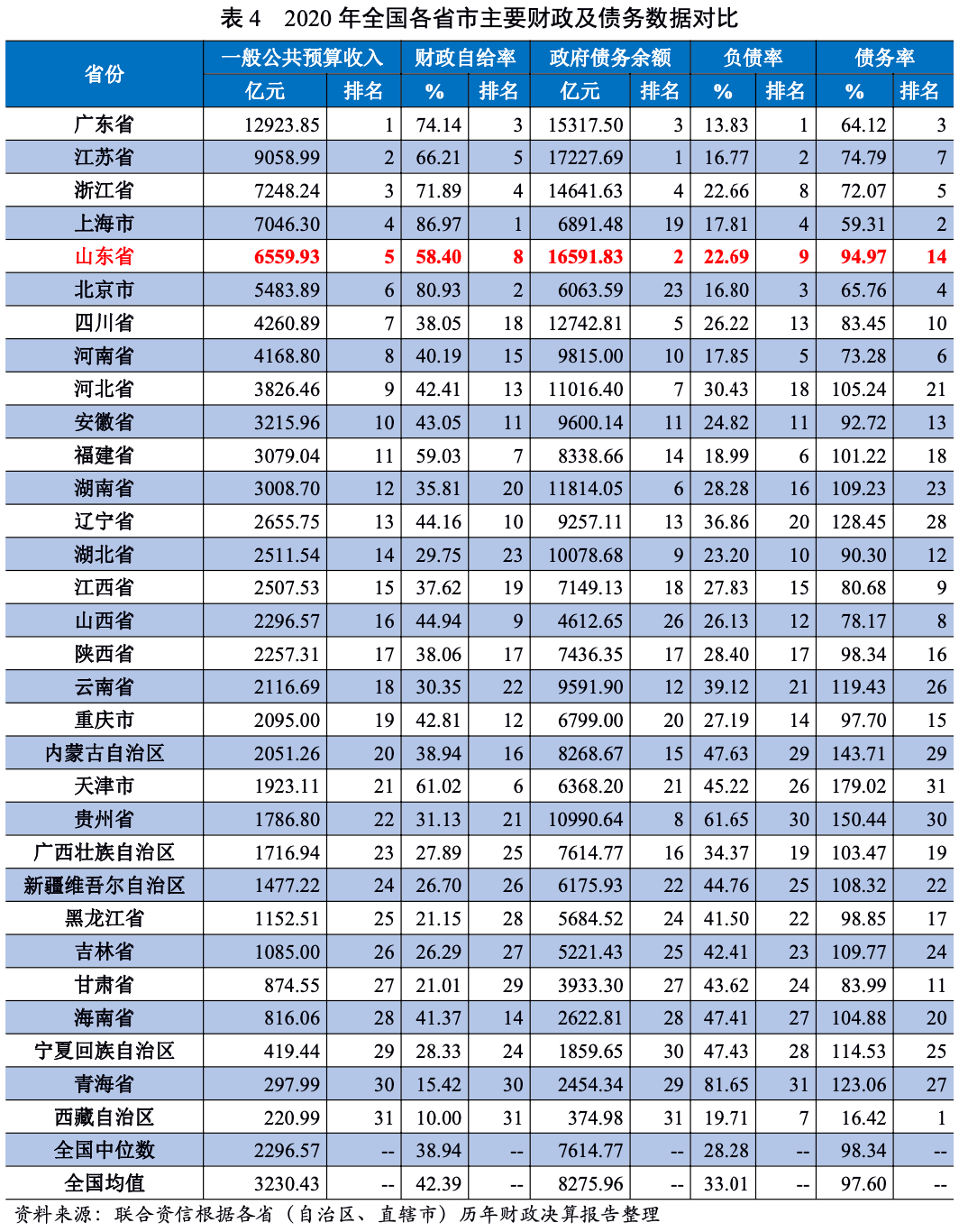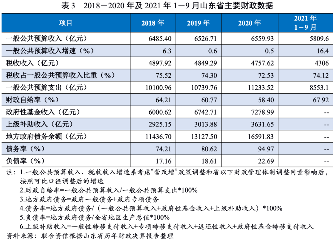 2.山東省財政收入及債務情況