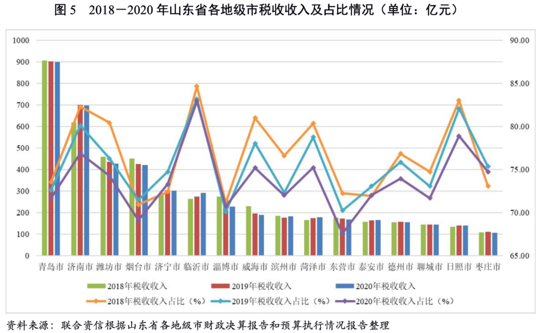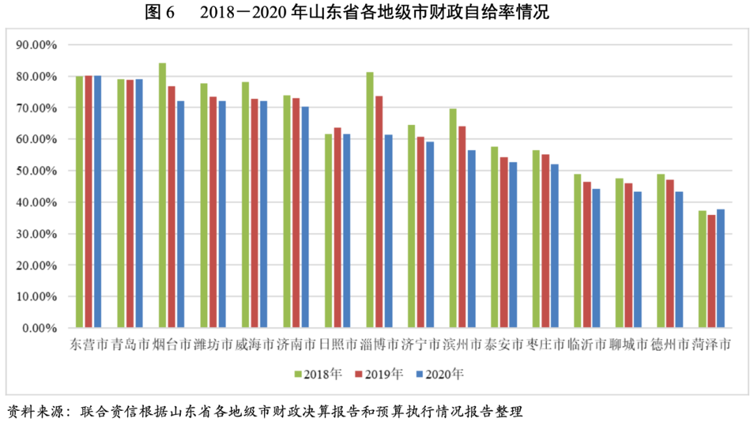 3.山東省各地級市財政收入對發債城投企業債務的支持保障能力