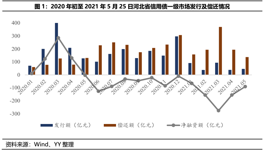 2020年初以來,信用債一級市場中,剔除同業存單后,河北省主體共發行262只,發行規模2,542.1億元;同期共償還380只債,償還規模3,155.5億元,融資凈流出達613.4億元。