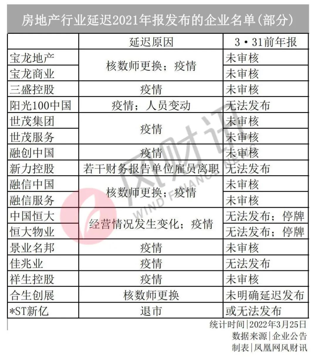 鳳凰網風財訊觀察到,在年報前夕,超10家房企更換了核數師,而其中過半房企選擇延期發布財報,這在往年的財報季鮮少有之。