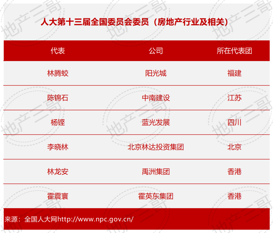 在參加全國(guó)“兩會(huì)”的代表和委員名單中,有哪些是來(lái)自于房地產(chǎn)企業(yè)的呢?