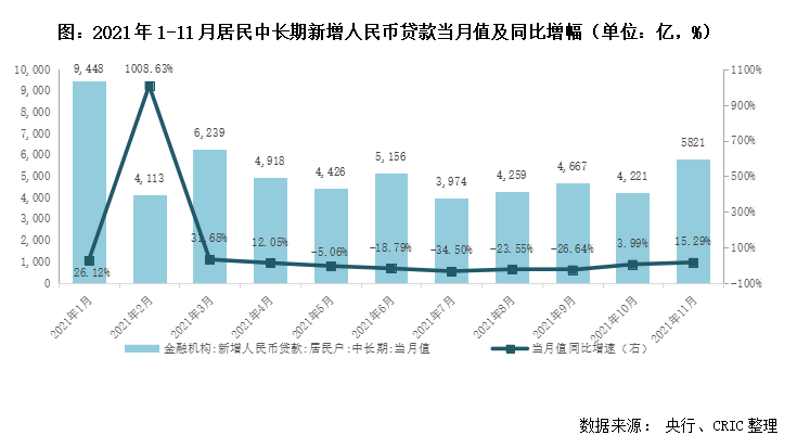 11月居民中長期貸款新增5821億元,達到今年二季度以來的單月最高值,按揭投放回歸正?;?,但企業層面回暖尚早。