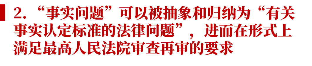 當(dāng)然,我們現(xiàn)在無(wú)從得知最高人民法院未來(lái)審查案件的實(shí)際標(biāo)準(zhǔn),以及其對(duì)待此類(lèi)“有關(guān)事實(shí)認(rèn)定標(biāo)準(zhǔn)的法律問(wèn)題”的態(tài)度。這樣的再審申請(qǐng)策略是否能夠成功,還有待進(jìn)一步觀察。