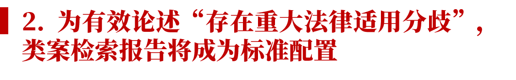 雖然理解與適用的措辭是“必要時(shí)”“還可以”附類(lèi)案檢索報(bào)告,但為了論證存在“類(lèi)案不同判”,類(lèi)案檢索報(bào)告幾乎是必須配備的標(biāo)準(zhǔn)配置。和既往案件的類(lèi)案檢索報(bào)告不同,這里需要向最高人民法院提交的類(lèi)案檢索報(bào)告,不僅應(yīng)報(bào)告對(duì)己方有利的案例,還應(yīng)包括對(duì)己方不利的案例,這樣才能向最高人民法院展示實(shí)踐中存在的法律適用分歧。