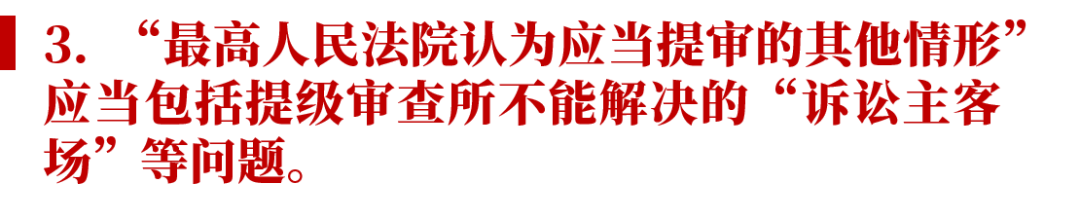 再審審查之后,最高人民法院決定提審的要求更高,需要滿足:(1) 具有普遍法律適用指導(dǎo)意義的;(2) 最高人民法院或者不同高級(jí)人民法院之間近三年裁判生效的同類(lèi)案件存在重大法律適用分歧,截至案件審理時(shí)仍未解決的;(3) 最高人民法院認(rèn)為應(yīng)當(dāng)提審的其他情形。