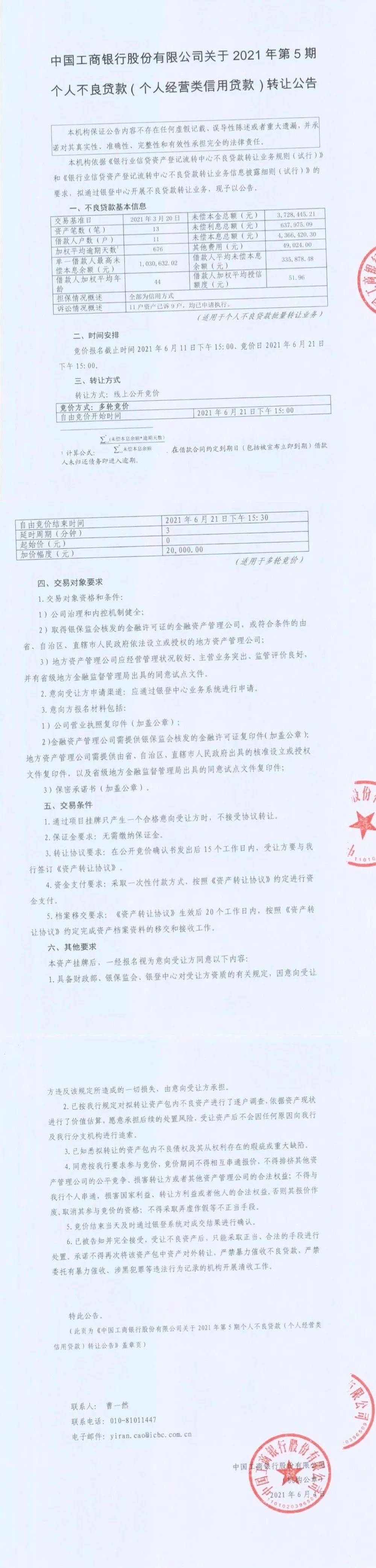 附工行2021年第4期、第5期個人不良貸款轉讓公告: