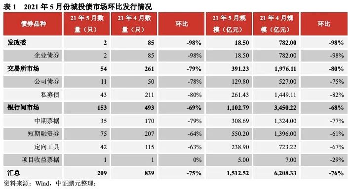 一、嚴(yán)監(jiān)管下,5月城投債發(fā)行大幅下降