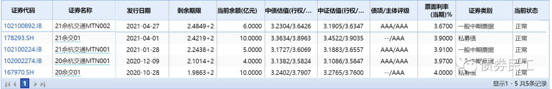 余杭交通的存續(xù)債券金額為35億元,存續(xù)債券5只,存續(xù)債券產(chǎn)品包括中期票據(jù)和私募債,未發(fā)行過企業(yè)債券。