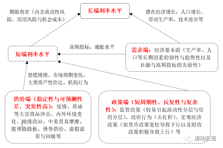 (四)整體來看,利率的影響因素可以分為需求端、政策端和供給端三個部分,其中供給端以及政策端主要有通過影響短端利率水平來間接影響長端利率水平,而需求端則是長端利率水平的最重要決定因素。