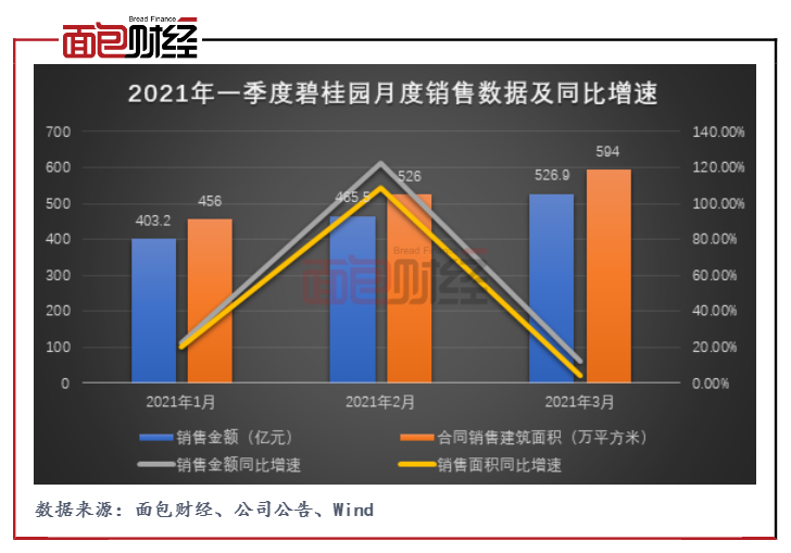 公司2月銷售數據同比增幅較大,主要由于去年同期受疫情影響,公司房地產銷售出現斷崖式下跌。值得關注的是,雖然碧桂園合同銷售數據同比大幅上升,但公司銷售增速低于行業整體增速。根據國家統計局數據,今年一季度全國商品房銷售面積為36007萬平方米,同比增長63.8%;商品房銷售金額為38378億元,同比增長88.5%。