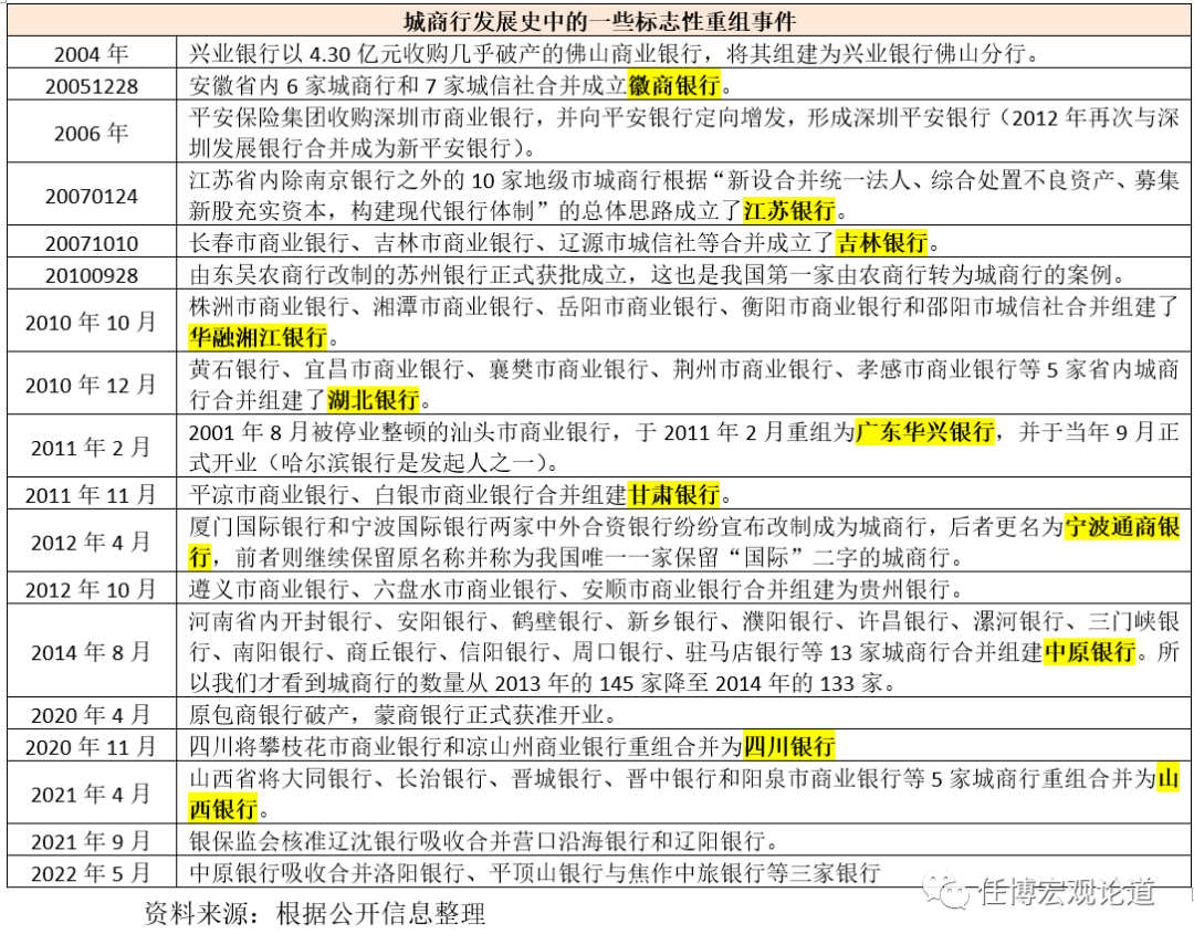 2002年9月5日,央行在其網站上公布了銀行監管課題組的一篇報告《進一步發揮現有中小商業銀行的作用》,明確提出“在化解地區金融風險過程中,中小商業銀行形成了以地方政府為主導的股權結構……但地方政府的入股,必將對中小商業銀行形成行政干預的壓力……要支持中小商業銀行的業務聯合和重組”。這份報告為第二年獨立出來的銀監會提供了方向上的指引。2004年9月7日,剛成立不久的銀監會表示“鼓勵和支持城市商業銀行積極開展引進境外戰略投資者、上市和城市商業銀行之間的聯合與重組等項工作”。