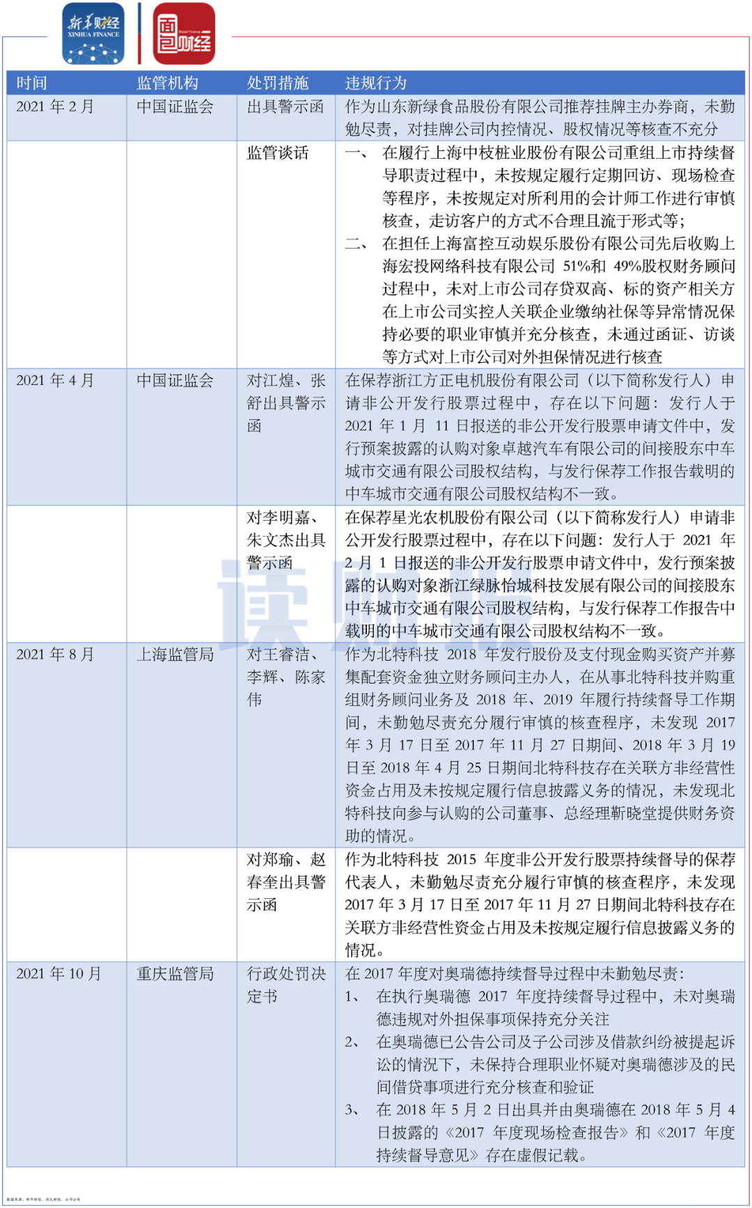 由于在相關(guān)保薦業(yè)務(wù)上存在較為嚴(yán)重的合規(guī)問題,海通證券2021年以來被證監(jiān)會(huì)以及多個(gè)地方證監(jiān)局出具警示函、監(jiān)管談話或給與行政處罰。