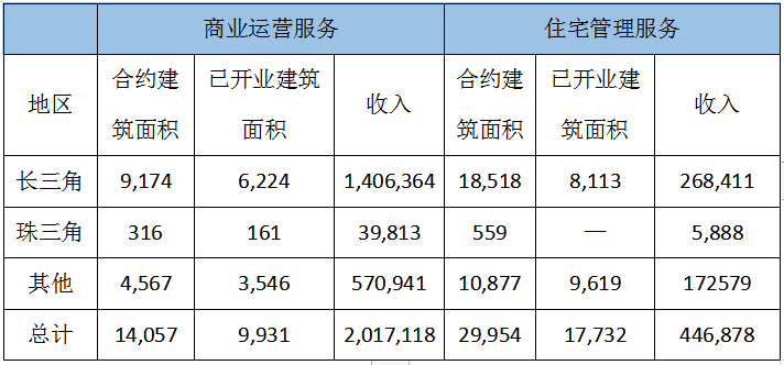 截至2021年12月31日,寶龍商業(yè)的商業(yè)運營服務已開業(yè)建筑面積約為990萬平方米,按年上升約130萬平方米,同比增長15.12%;已開業(yè)項目數(shù)88個,較2020年同期68個新增20個;合約建筑面積約為1410萬平方米,較2020年同期增加280萬平方米。住宅物業(yè)管理服務的已交付建筑面積約為1770萬平方米,按年上升約330萬平方米。分區(qū)域來看,主要增長來源于長三角地區(qū),這與其公司戰(zhàn)略及定位密不可分。