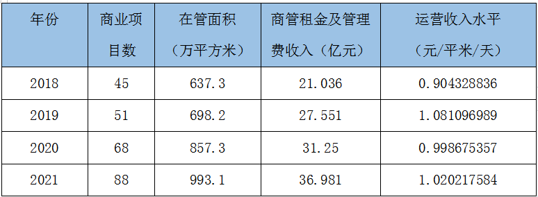 毛利率低的原因在于其租金收入水平極低,資料顯示,2018年至2020年,寶龍商業(yè)的平均運營管理收入水平(即租金及管理費)始終徘徊在1元/平方米/天,而業(yè)內(nèi)的龍湖商業(yè)2021年的平均收入水平是2.98元/平方米/天,新城商業(yè)2021年平均收入水平約2元/平方米/天,萬達商業(yè)2021年上半年的平均收入水平是2.15元/平方米/天。