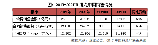 業(yè)績(jī)?cè)鲩L(zhǎng)超行業(yè)平均,目標(biāo)完成率51.7%。2021年上半年,港龍中國(guó)合約銷(xiāo)售金額178.5億元,同比增長(zhǎng)約58%,高于百?gòu)?qiáng)房企平均40%的銷(xiāo)售增長(zhǎng)率。同期銷(xiāo)售面積148.8萬(wàn)平方米,同比增長(zhǎng)65%。管理層在2020年中期業(yè)績(jī)發(fā)布會(huì)上表示2021年的銷(xiāo)售目標(biāo)為345億元,前6月目標(biāo)完成率51.7%,高于行業(yè)49%的平均水平。