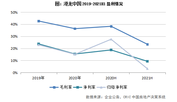 2020年大幅擴(kuò)張,2021年上半年趨于謹(jǐn)慎。2020年全口徑拿地銷(xiāo)售金額比0.68,初期擴(kuò)張力度大,至2021年上半年,拿地銷(xiāo)售金額比降至0.24,低于百?gòu)?qiáng)房企的0.29,可見(jiàn)港龍的投資策略趨于謹(jǐn)慎。且根據(jù)中期業(yè)績(jī)發(fā)布會(huì),上半年意向跟蹤地塊共1259宗,經(jīng)過(guò)初判、研究、參拍等環(huán)節(jié)最終篩選出7宗地塊,可見(jiàn)企業(yè)購(gòu)地策略的謹(jǐn)慎態(tài)度。