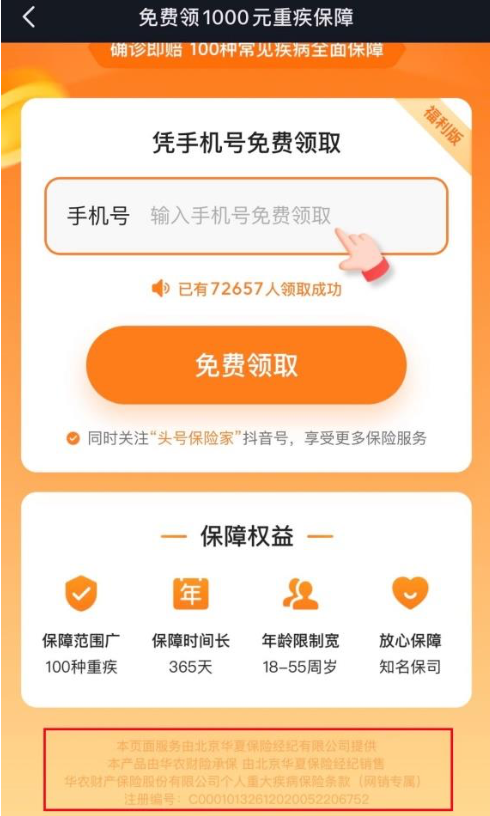 圖 10:抖音“頭號(hào)保”免費(fèi)領(lǐng)取1000元重病保障