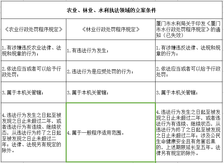 比較立案條件可知,在農業和水利執法領域,“依法應當或者可以給予行政處罰”,是應當立案的必要條件之一,也就是說,對于可以不予處罰(主要是首違不罰)的違法情形,也在立案范圍,建議執法機關可以先予以立案,經過調查取證發現若符合條件的,再作出不予處罰決定。