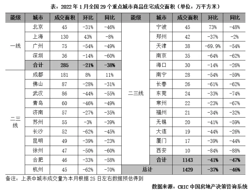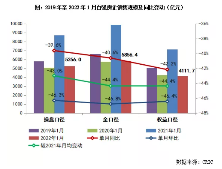 1月樓市成交同環(huán)比下降約4成,百強(qiáng)房企業(yè)績表現(xiàn)不及去年同期。