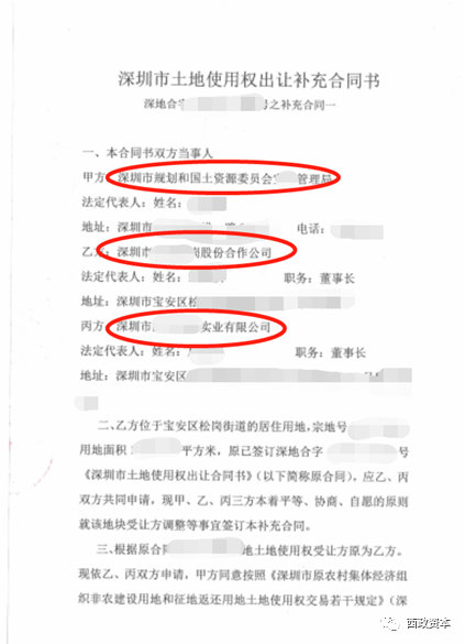 第一,補(bǔ)充協(xié)議簽訂主體為:國(guó)土部門VS股份合作公司 VS 開發(fā)商項(xiàng)目公司;
