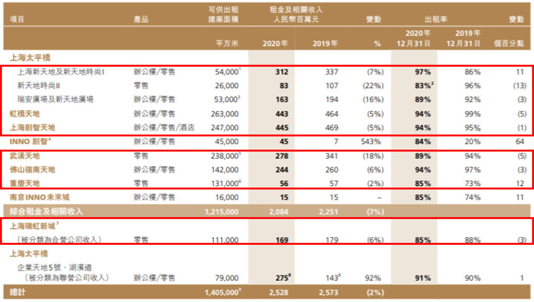 其中,中國(guó)新天地負(fù)責(zé)營(yíng)運(yùn)管理的7個(gè)項(xiàng)目租金收入總計(jì)21.93億元,占總收入的87%,項(xiàng)目平均出租率為90%。