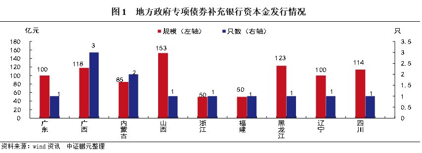 1、哪些省份發(fā)行了專項債補充銀行資本金?