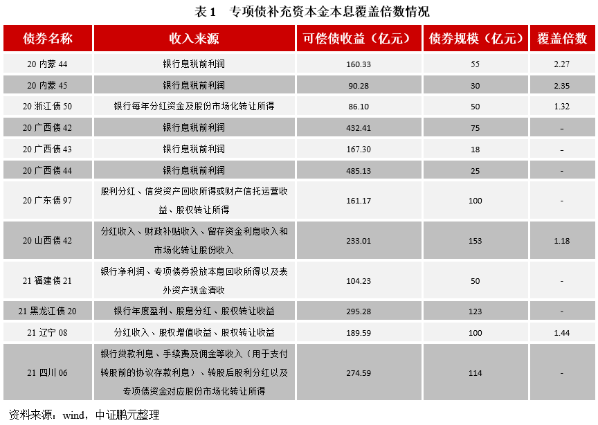3、專項債券補充了哪些銀行資本?