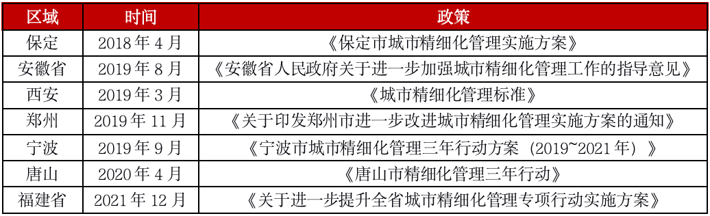 從政策方面來看,早在2017年,中央就做出指示:要像繡花一樣精細治理;2018年政府工作報告首次提出“精細化服務”;2020年政府工作報告提出“大力提升縣城公共設施和服務能力”。2020年4月,發(fā)改委發(fā)布了《2020年新型城鎮(zhèn)化建設和城鄉(xiāng)融合發(fā)展重點任務》,提出“實施新型智慧城市行動;完善城市數(shù)字化管理平臺和感知系統(tǒng);加快推進城市更新;改造一批老舊小區(qū),完善基礎設施和公共服務配套,引導發(fā)展社區(qū)便民服務。”