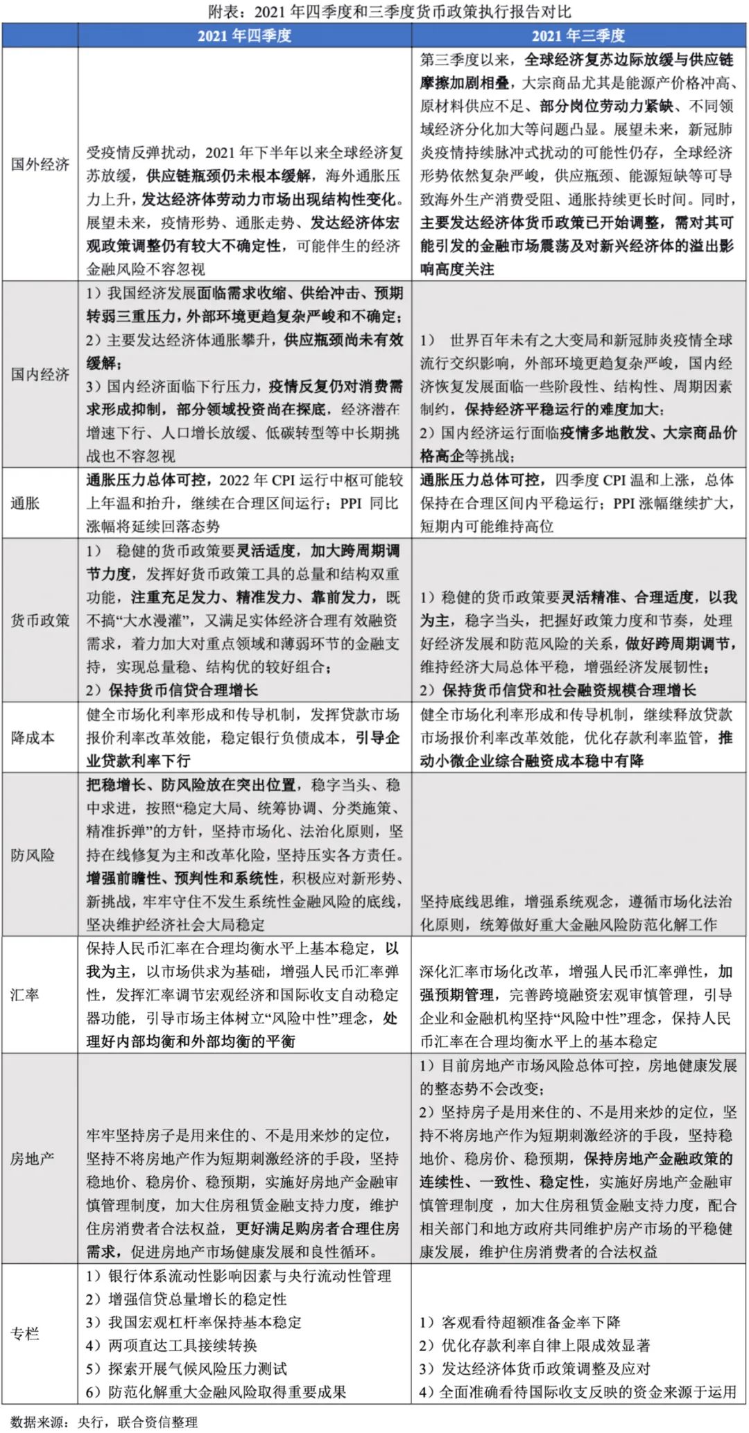 央行對發達經濟體的政策關注度上升。四季度報告將“以我為主”從以往的政策總基調部分移至匯率政策部分,此外,央行在報告中強調主要發達經濟體通脹攀升,供應瓶頸尚未有效緩解,全球跨境資本流動和金融市場調整的風險上升,均表明央行對美聯儲等發達經濟體加速加息的關注度上升,且以往美聯儲連續加息期間,我國央行尚未有加息的前例,所以美聯儲加息進程可能會對我國貨幣政策產生掣肘。