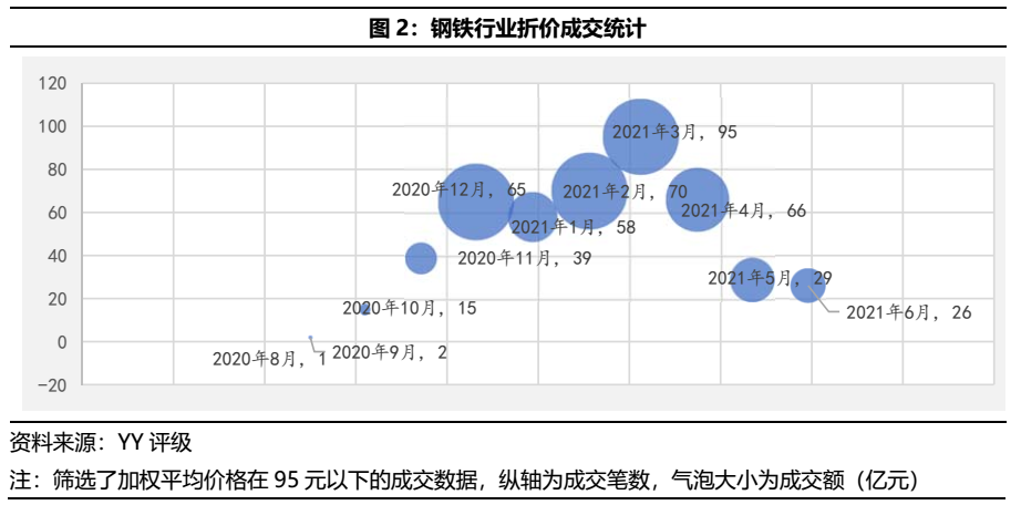 從行業(yè)折價(jià)統(tǒng)計(jì)成交來(lái)看,永煤事件后鋼鐵行業(yè)的異常成交顯著增加,但從2021年4月開(kāi)始,異常量逐漸減少,市場(chǎng)情緒逐漸緩和。
