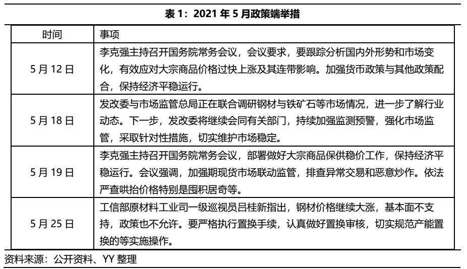 今年上半年,國(guó)內(nèi)市場(chǎng)鋼材價(jià)格整體在高位區(qū)間震蕩,尤其是5月鋼材價(jià)格上演“過(guò)山車”行情,截至5月中旬全國(guó)鋼材市場(chǎng)八大品種的噸鋼均價(jià)突破了6600元。而政策面,從中央到地方各層級(jí)主管部門(mén)紛紛采取各種措施,抑制鋼材價(jià)格快速上漲。