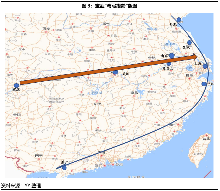 2021年上半年,寶武集團(tuán)又加快了整合的步伐,2月并入云南的昆鋼控股,5月傳出接管包鋼集團(tuán)下屬個(gè)別子公司的消息(尚未得到官方證實(shí)),7月對(duì)山鋼集團(tuán)的整合又提上日程,構(gòu)造了現(xiàn)在“彎弓射箭”的寶武大格局(彎弓搭箭,是指長(zhǎng)江上中下游的馬鋼、武鋼和重鋼為箭,湛江、寶鋼等沿海基地為弓)。